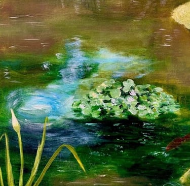 Decades later, painting has flowed through every chapter of my life. Shaped by motherhood, professional milestones, and the writing of two novels, the inner current remained. Alongside my painting practice, I teach Tai Chi, where movement, breath, and stillness inform my intuitive approach to creation.